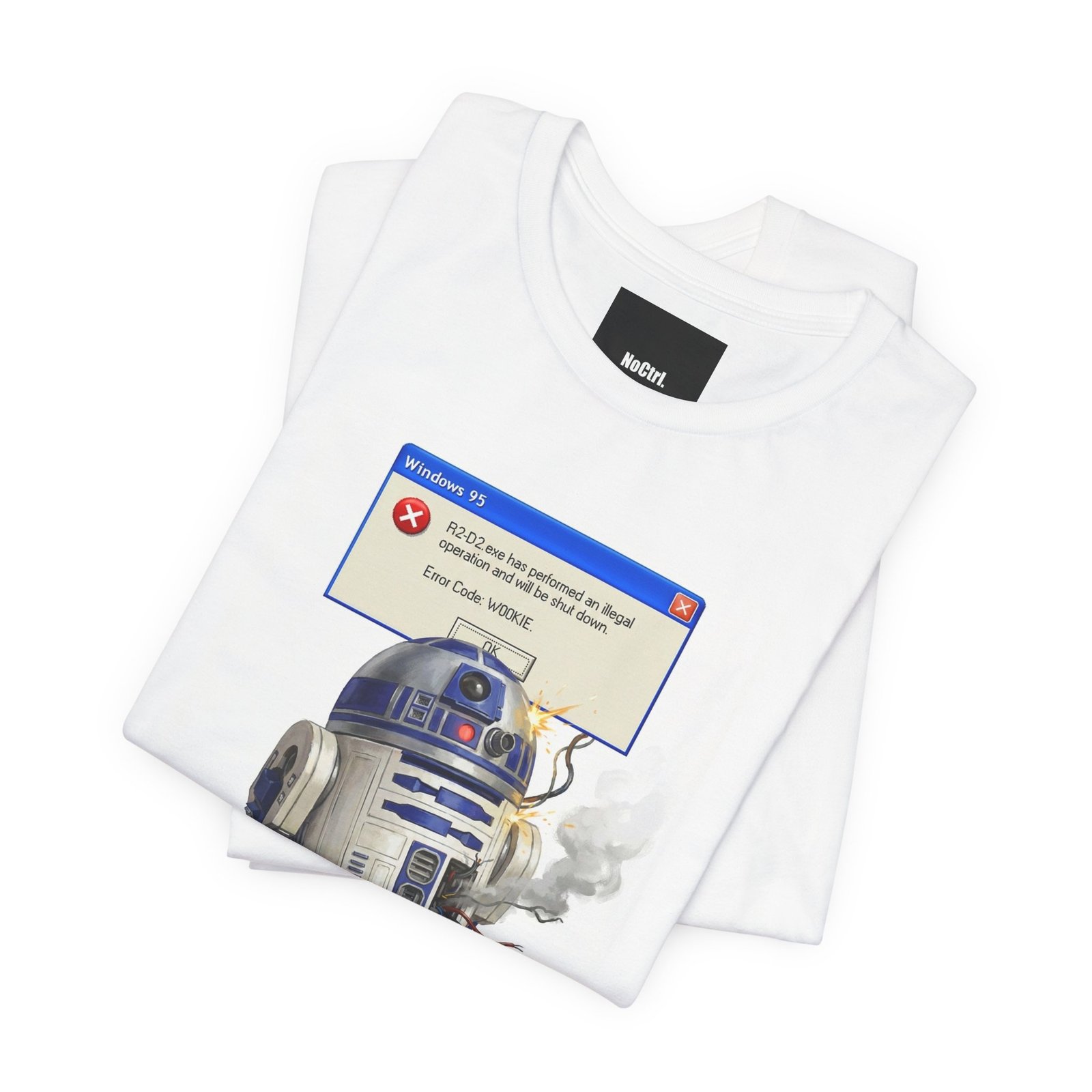 This design reimagines everyone’s favourite beeping droid mid-meltdown, complete with a classic error message and just enough smoke to suggest things have gone very, very wrong. It’s retro tech humour meets sci-fi chaos — the perfect crossover for anyone who grew up fighting pop-up errors and rooting for rebels.