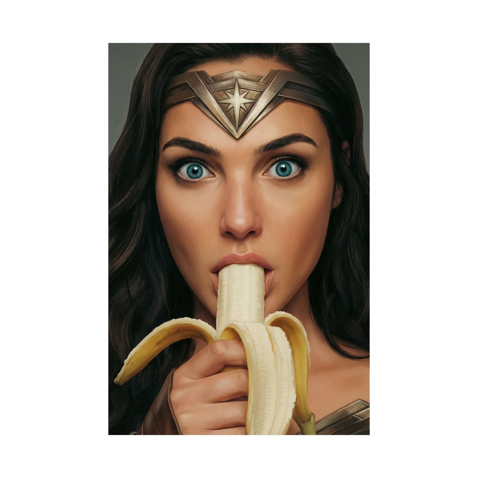 Bold, confident, and quietly powerful, “Golden Resolve” captures a modern portrait of a legendary warrior in a rare unguarded moment. Wearing a distinctive golden tiara that symbolizes strength and honor, the heroine faces forward with an intense, unbreakable gaze.