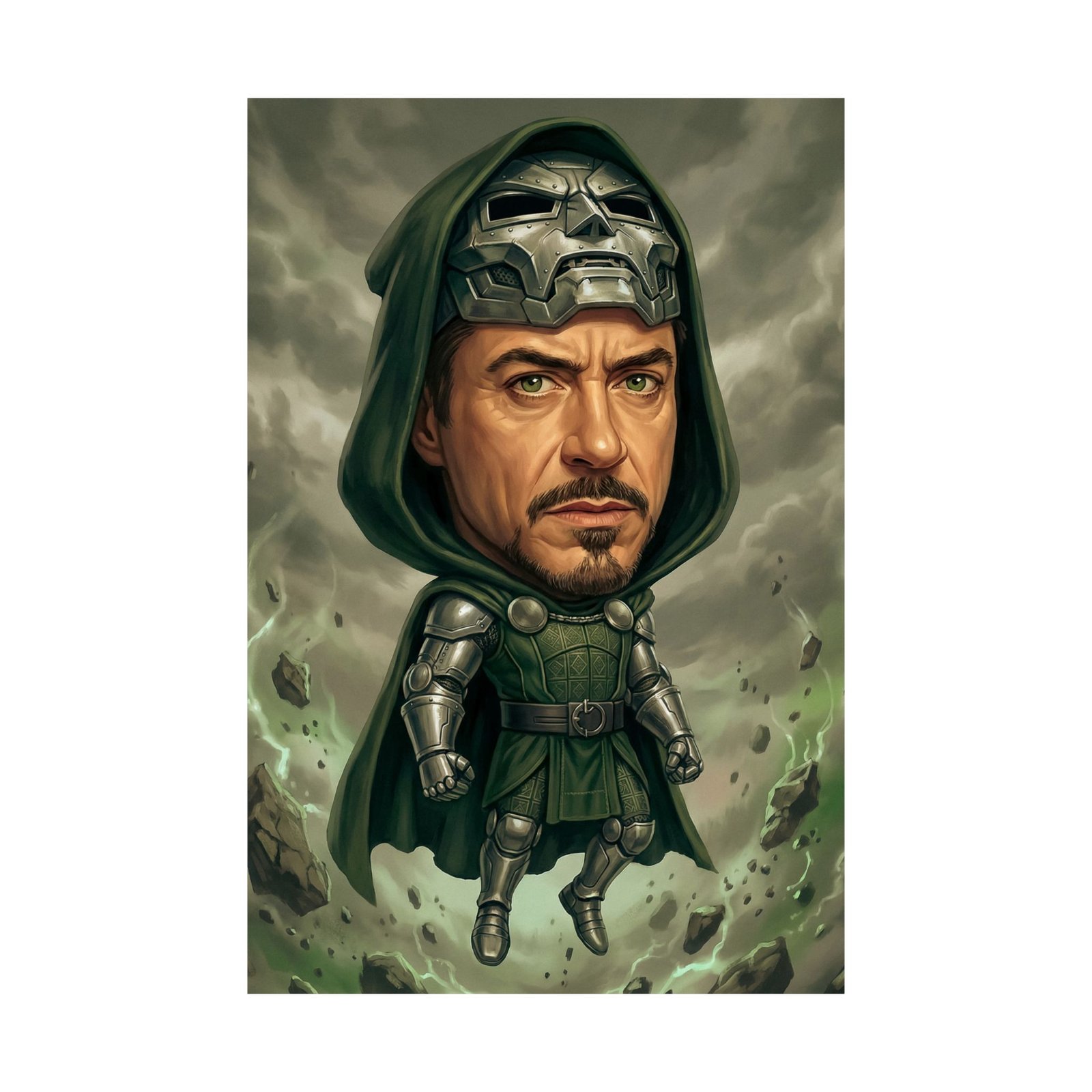 Power doesn’t announce itself. It simply arrives. This striking poster features a hooded armored ruler floating amid crackling green energy, clad in medieval-meets-futuristic steel and wrapped in an ominous cloak. His calm, unblinking stare and levitating debris tell the story instantly — this is not a hero rushing into battle, but a mastermind who already controls the outcome. Rendered in a cinematic, ultra-detailed style with dark fantasy and sci-fi influences, this artwork blends ancient authority, advanced technology, and raw intimidation into one unforgettable image. Perfect for fans of villains, anti-heroes, dark fantasy, comic-inspired art, and powerful character-driven décor.