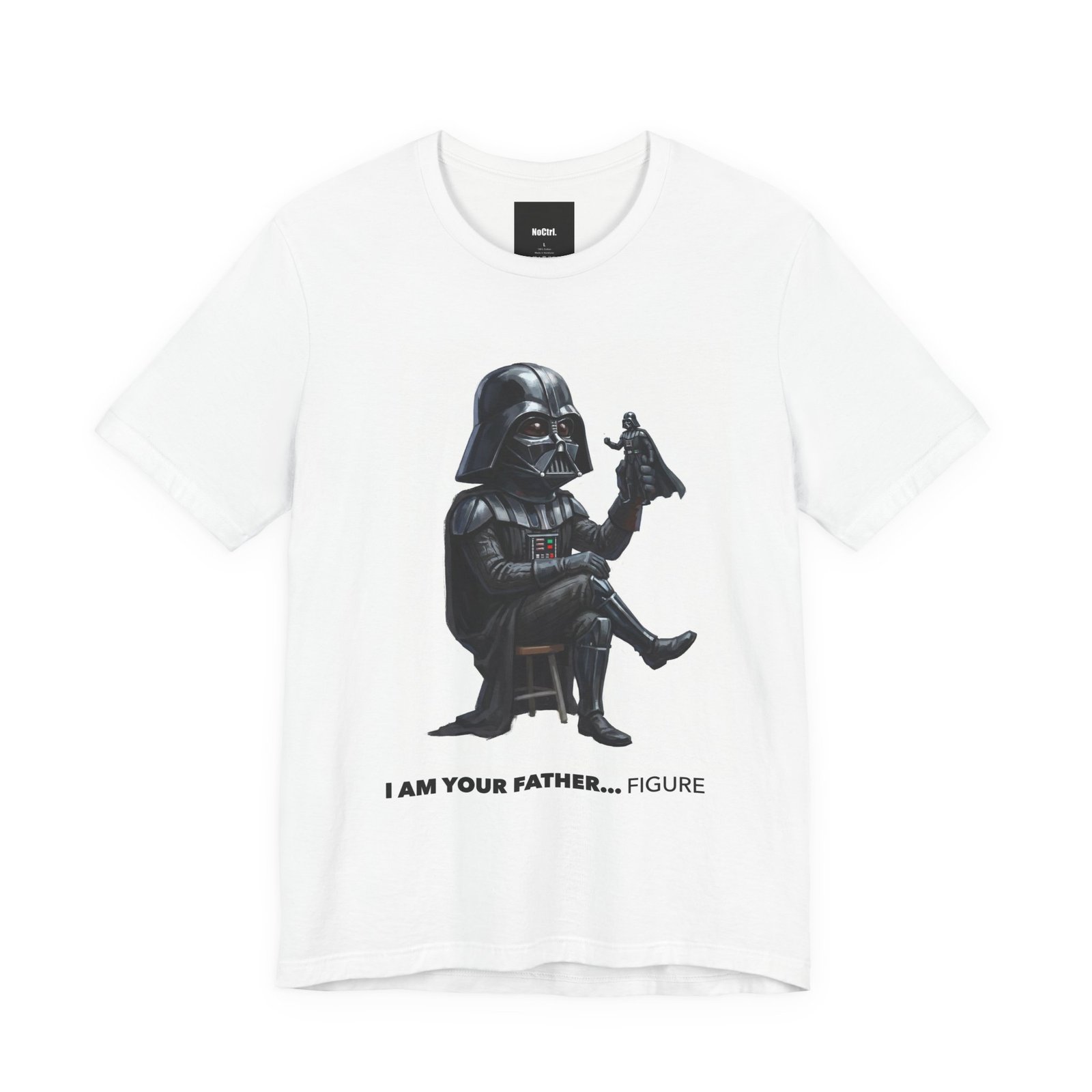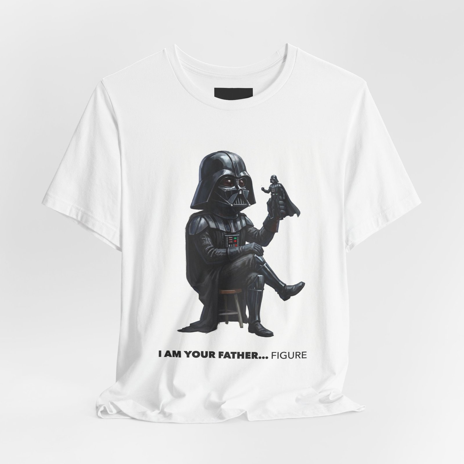Parenting is hard. Galactic parenting is harder. This playful design flips one of the most iconic sci-fi moments on its helmet, turning ultimate villain energy into peak dad humor. Featuring a stylized, chibi-inspired dark enforcer casually holding his own action figure, this shirt is a perfect blend of pop-culture satire, dry comedy, and minimalist design. It’s bold without being loud, funny without trying too hard — the kind of shirt that gets double-takes, smirks, and “wait… I get it” reactions. Perfect for fans who love their sci-fi with a sense of humor and their shirts doing half the talking.